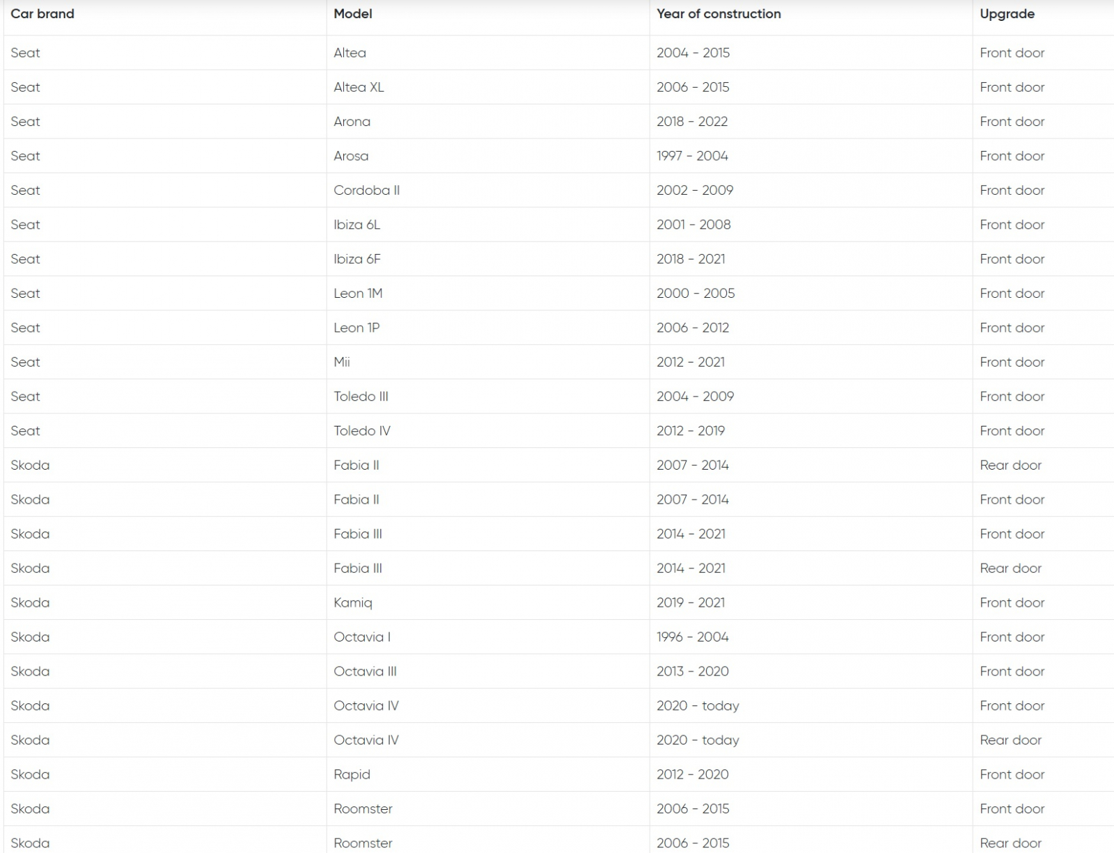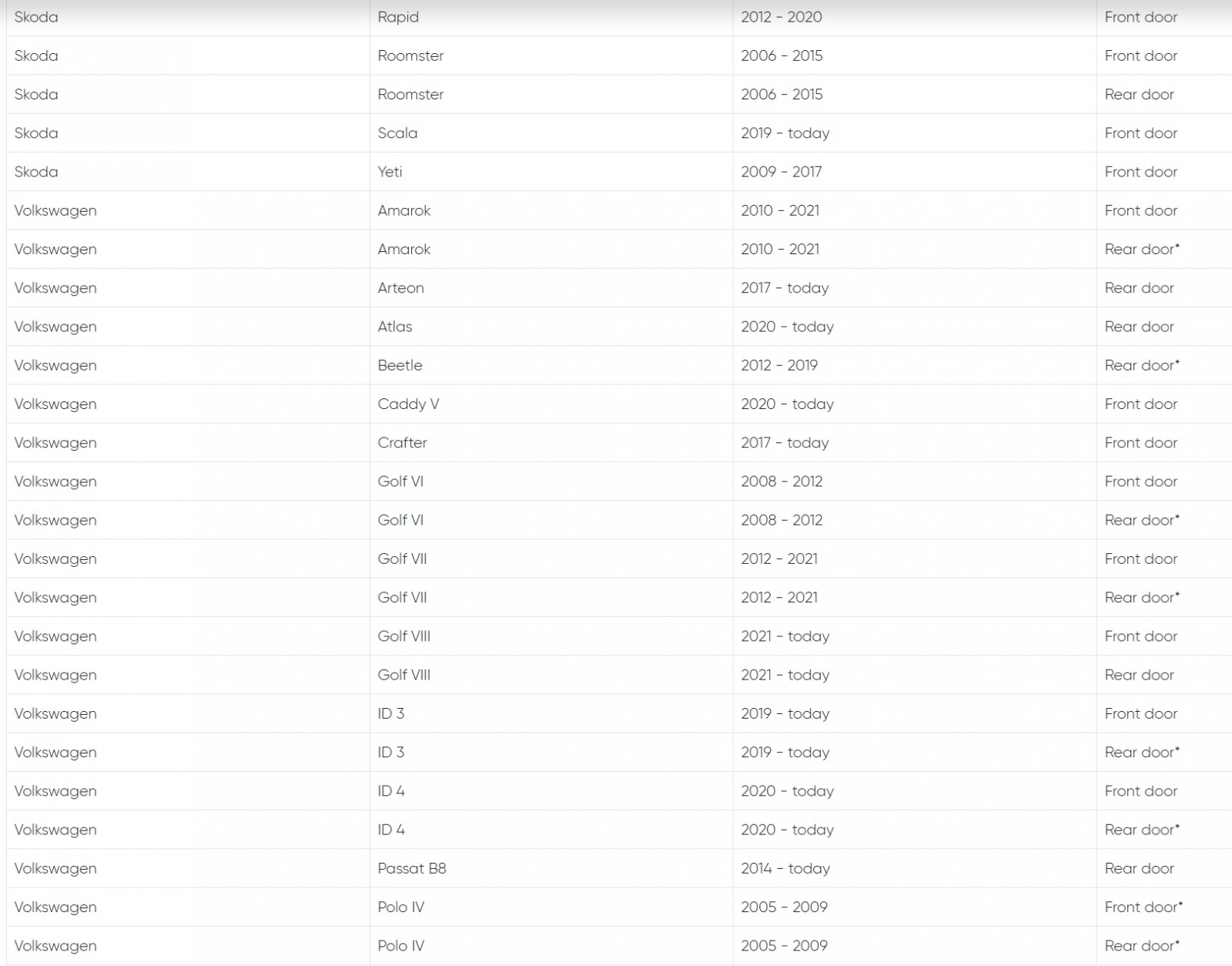 • Suitable for Volkswagen, Seat and Skoda models