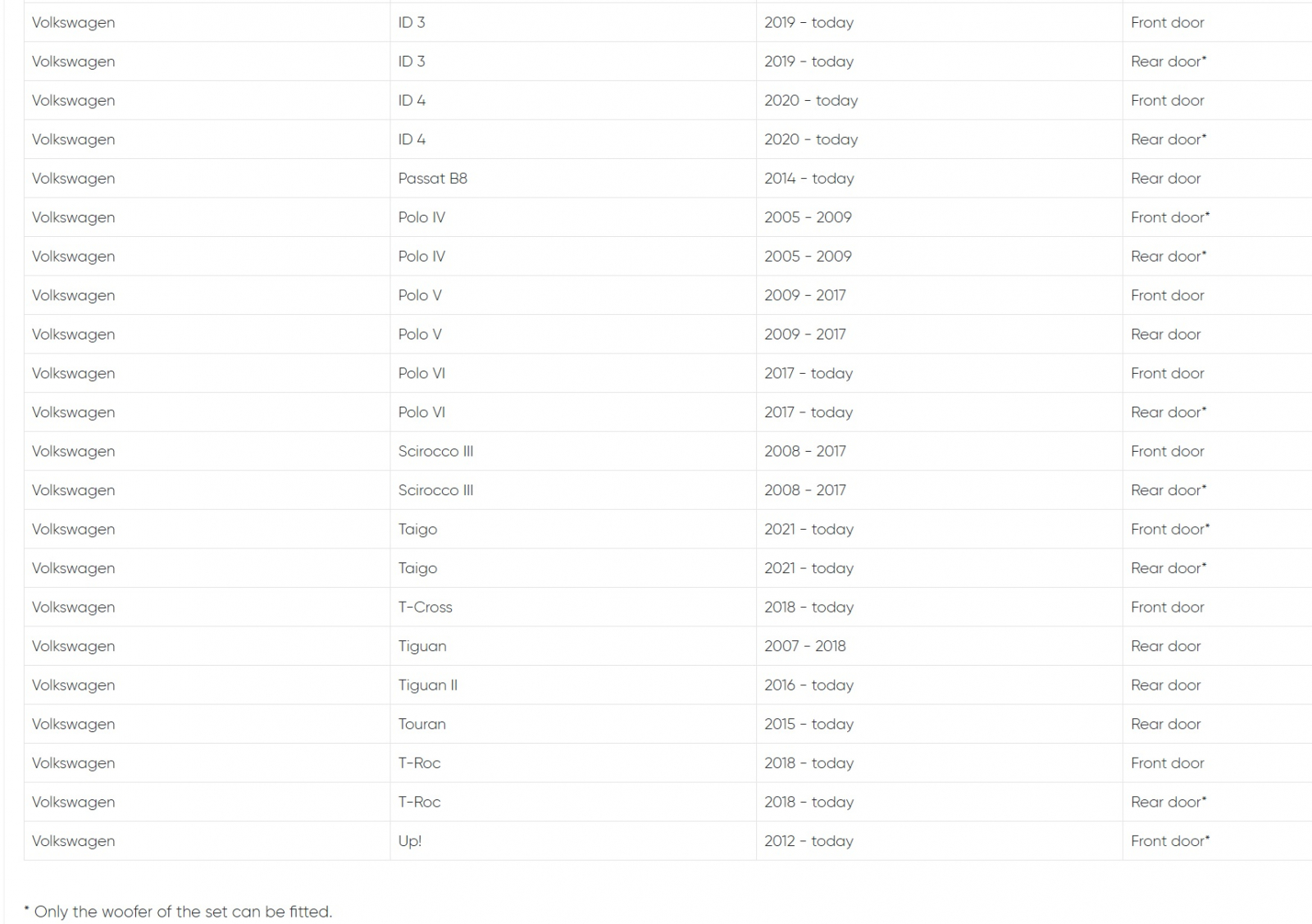 EM-VWFX155 și EM-VWFX180 sunt probabil cele mai versatile sisteme de difuzoare cu 2 căi din seria EMPHASER UNIVERSE. Cele două Compo-uri constau din componente care se potrivesc perfect pentru majoritatea vehiculelor actuale Volkswagen, Seat și Skoda. Ele vă oferă o imagine de sunet fantastică pentru o muzică pură, cu bas care umple camera și sunet detaliat.