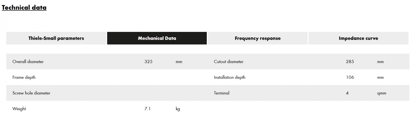 Plat, mai plat - subwoofer-uri FLAT! Noua serie ETON MW FLAT marchează prin dimensiunile sale deosebit de plate - performanță bogată de bas și totuși extrem de plată. Ideal pentru toate subwooferele încastrate cu roți de rezervă sau carcasele care trebuie să fie plate. Magneți de ferită extrem de puternici și bobine de 2 x 2 Ω mari, rezistente, cu con de hârtie presată și învăluire cu rază lungă, într-un design special. Coșuri din aluminiu turnat sub presiune extrem de rezistente la torsiune și terminale de conectare cu cleme de înaltă calitate. Unul dintre cele mai puternice subwoofere plate din clasa sa!