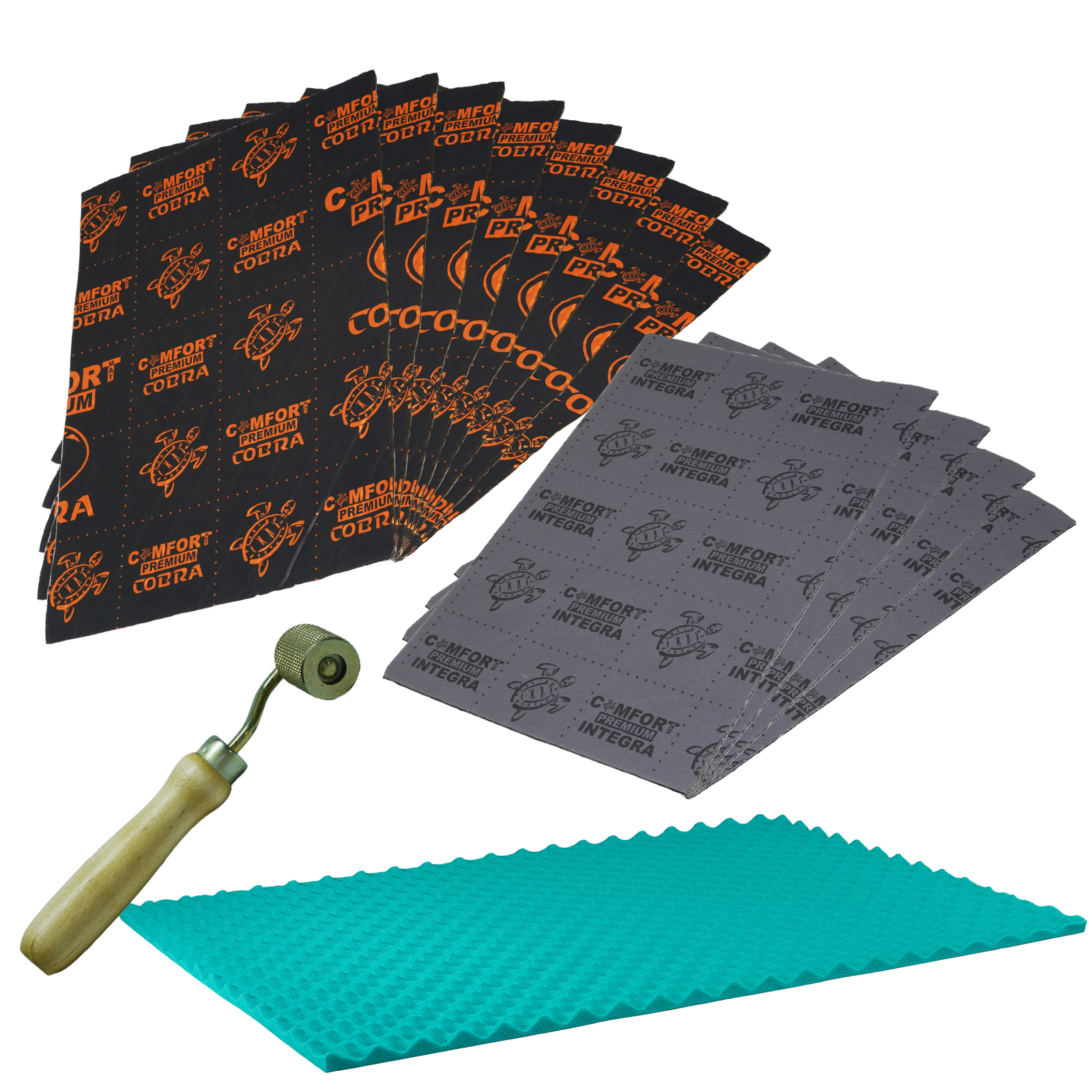 👉 Pentru o manipulare si o instalare mai usoara, foile de vibro absorbant si fono izolant sunt taiate in jumatate la o dimensiune de 350x500mm, astfel pachetul va contine 8 foi Comfortmat Cobra (350x500mm), 4 foi Comfortmat Integra (350x500mm) si 1 foaie Comfortmat Soft Wave Expert (1000x700mm)!